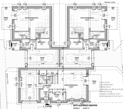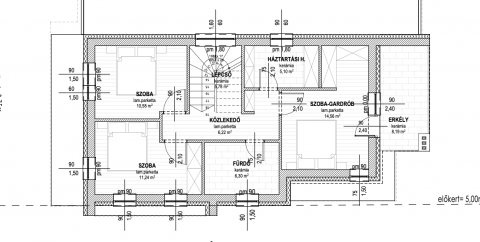 Nappali+3hálószoba+gardrób, 21nm garázs, szülői háló.