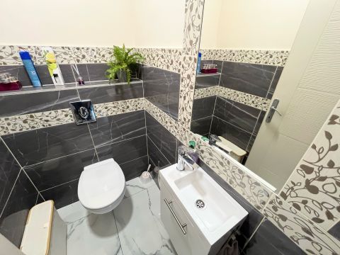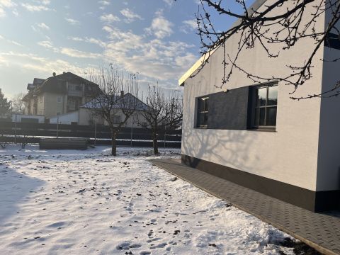 A modern gépekkel felszerelt konyha, háztartási helyiség, valamint a tágas gardrób minden háziasszony álma. Az egyszintes épület belső kialakításánál a praktikusság és élhetőség volt a fő szempont a magas műszaki tartalom kivitelezésével: