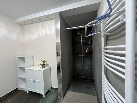 A ház fűtését fűtőpanelek és padlófűtés biztosítja.
