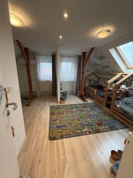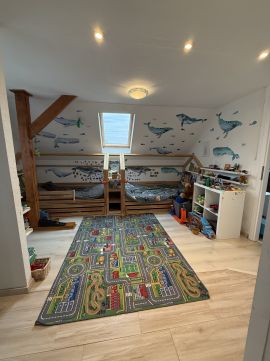 a felső szinten található nagyobb szoba igény esetén kettéosztható, így rugalmasan alakítható akár több gyermek számára is