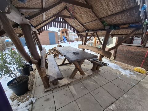 Fiatalos, modern elrendezésű és kialakítású családi házat kínálok eladásra 452 m2-es telekkel Kiskunfélegyháza közkedvelt városrészében, a Kossuthvárosban. A házon az elmúlt évek során több jelentős felújítást történt. A fürdőszobát 2020-ban újították fel minőségi csempékkel, burkolatokkal, míg a konyha 2021-ben nyerte el mostani formáját. A fűtést ugyancsak 2021-ben korszerűsítették, amikor is gáz-cirkó rendszert alakítottak ki modern kondenzációs kazánnal. Emellett a tető héjazatot 2022-ben cserélték le új prémium cserépre (tetőszerkezet megerősítve, lefóliázva, új lécezéssel). A nappali + 2 hálós lakóingatlan hasznos alapterülete 79 m2, a rezsije, fenntartása alacsony. A konyhában a sütő és a tűzhely elektromos, az udvaron ki lett alakítva egy 30 m2-es autóbeálló és található egy 30 m2-es elemezgarázs-tároló is. Továbbá a zárt udvar végében épített medence van, ami mellett kiülő, fedett terasz és elektromos nagykapu szolgálja a további kényelmet. Ide tényleg csak költözni kell! Hívjon és kérjen időpontot.