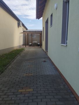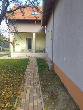 Az ingatlanhoz tartozó telek: 686nm, rendezett, körbekerített. Saroktelken helyezkedik el, mindkét irányból bejárati lehetőséggel, több autó számára alkalmas térkövezett udvari beállóval.