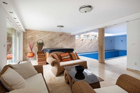 TERMÉSZETKÖZELI AMERIKAI KONYHÁS NAPPALI+7 HÁLÓS, 5 FÜRDŐSZOBÁS LUXUS CSALÁDI HÁZ BELSŐ MEDENCÉVEL ELADÓ!