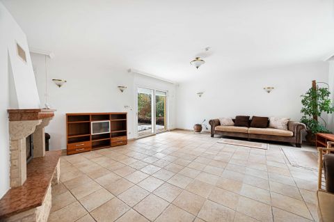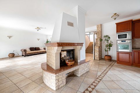 A földszinten kertkapcsolatos , kandallós nappali, tágas étkezős konyha, 2 hálószoba, 2 fürdőszoba,és egy vendég WC található.