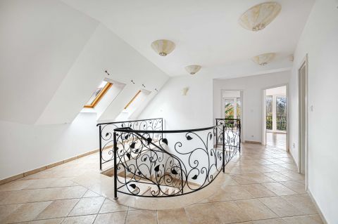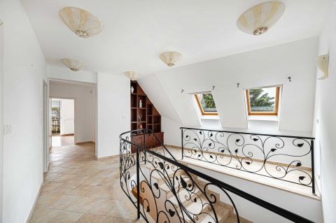 Az emeleten 4 hálószoba, 2 fürdőszoba, és egy gardróbszoba kapott helyet. Minden szobának saját erkélyes van.