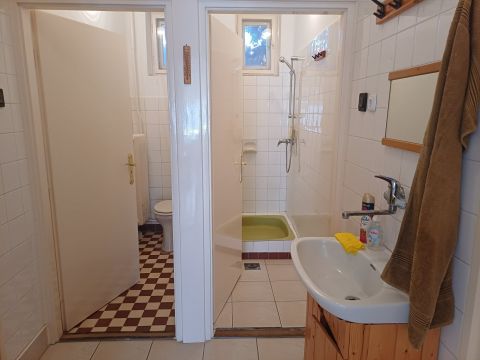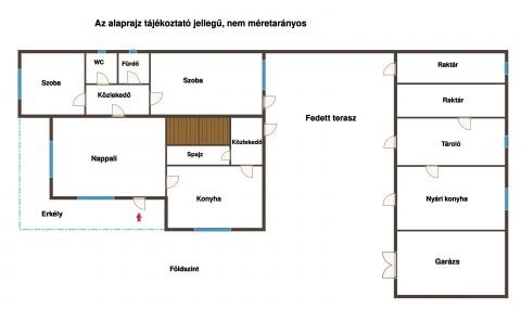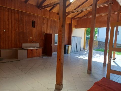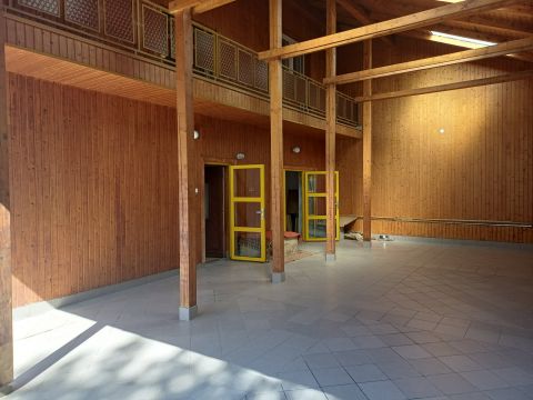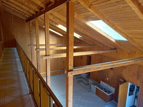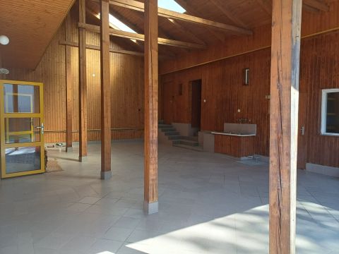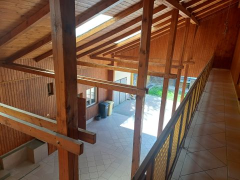 - két épület, fedett összeköttetéssel ( hangulatos látszó gerendás tető )