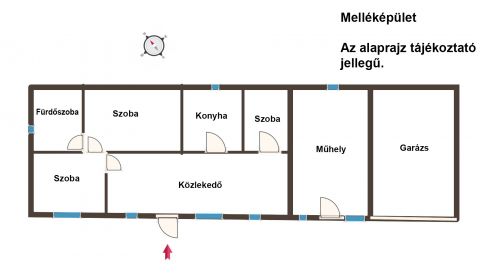 Melléképület: Egy autó számára garázs, műhely, és még egy 2 szoba, konyhás, fürdőszobás lakrész van itt kialakítva konvektoros fűtéssel.