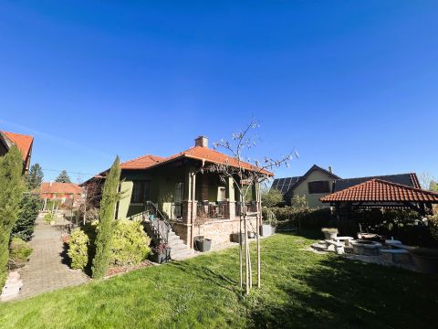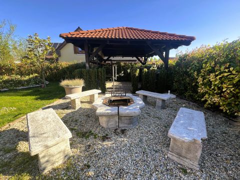 A külső tér sem hagy kívánnivalót maga után: a kertben fedett kiülő és sütögetőhely is található, mely tökéletes helyszín baráti összejövetelekhez vagy családi kikapcsolódáshoz. A jó fényviszonyok nemcsak az életteret, hanem a kertet is beragyogják, így a ház minden szeglete világos és barátságos hangulatot áraszt.