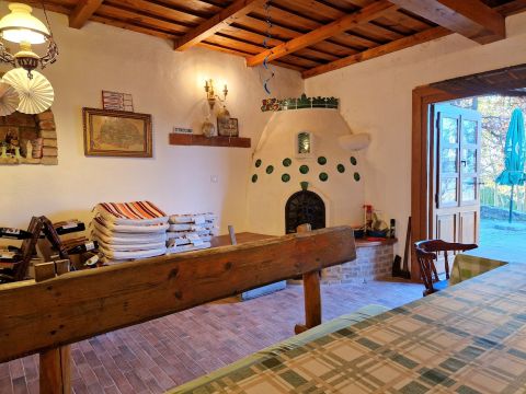 Víz, villany, derítő van a házban, fűtése búbos kemencéről történik.