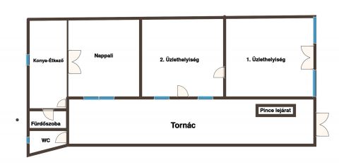 * ebből nyílik egy további 21 m²-es hátsó üzlethelyiség,
