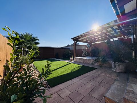 A házhoz tartozó, gyönyörű mediterrán kert gondozott, intim hangulatú, valódi pihenőoázis.