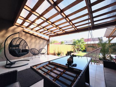 Harkány csendes, lakóövezeti részén kínálunk megvételre egy teljeskörűen felújított, mediterrán stílusú családi házat, amely jelenleg is sikeresen működő vállalkozásként üzemel, stabil, több éve fennálló bevétellel.