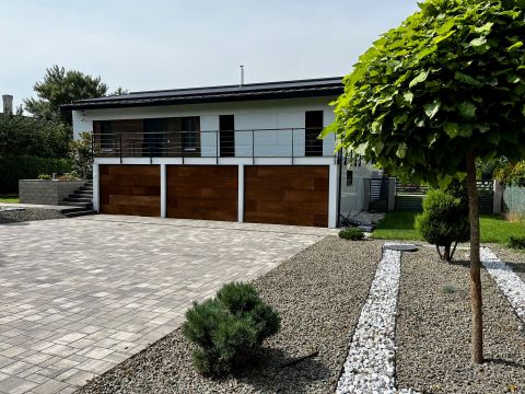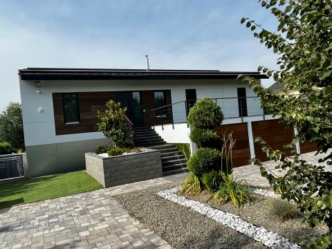 Piliscsabán, sorompóval ellátott, zárt lakóparkban kínálunk megvételre egy prémium minőségben kivitelezett, egyszintes, önellátó családiházat.
