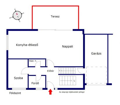 Hazaérkezve az autóval a garázsban parkolhat, ahonnan közvetlenül beléphet a lakásba. Itt a földszinten az előtérből nyílik az amerikai konyhás nappali (35,35 nm), mely teraszkapcsolattal is rendelkezik. Innen élvezheti a kert látványát, pihenhet, szórakozhat a család.