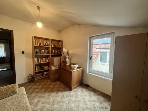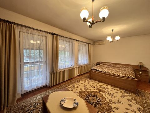 Az emeleti szinten további három külön nyíló szoba található, valamint egy kádas fürdőszoba. Az egyik helyiségből egy kényelmes méretű erkély is elérhető, amely tovább növeli az ingatlan komfortját.