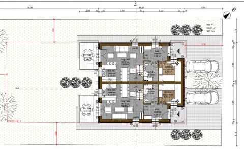 Az ingatlanhoz kb. 300 m² saját kert tartozik, amely ideális játszóterület gyerekeknek vagy kutyások számára. Egy saját gépkocsibeálló is kialakításra kerül.
