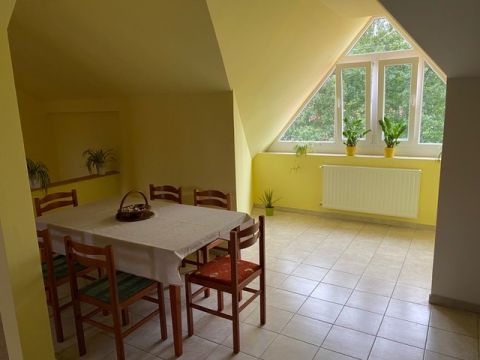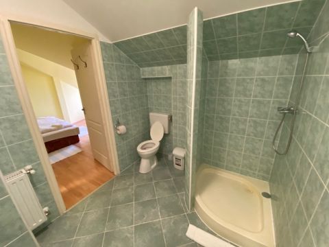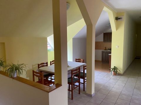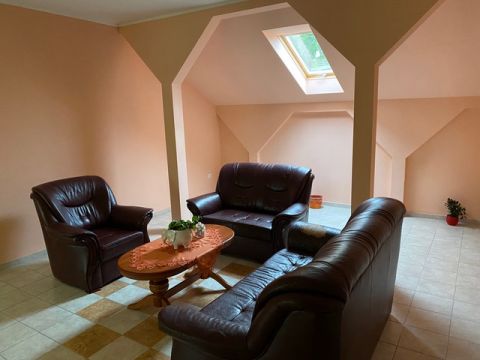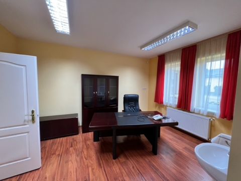 A 218 m²-es földszint irodai funkcióra kialakított, több helyiséggel, előtérrel, raktárral, teakonyhával, valamint női, férfi és mozgássérült mosdókkal. A 137 m²-es tetőtér önálló bejáratú lakrész, amelyben nappalikonyhaétkező és négy, saját fürdőszobás szoba található, így kiváló lehetőség lakhatási célú bérbeadásra, apartmanok kialakítására vagy munkásszállásként történő hasznosításra.