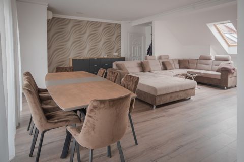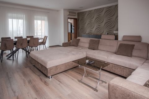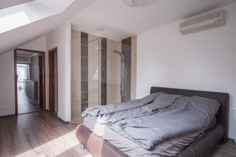 A 2. szint nettó 145 m2, mely egy nyugati tájolású, 11 m2-es erkéllyel egészül ki. Itt egy 41 m2-es nappali, 3 hálószoba, konyha-étkező, gardrób, közlekedők és vizes helyiségek találhatók. Gázkazán és padló fűtéses, minden szobában klíma is van. Ideális lakhatásra, irodai, szolgáltatói célra.