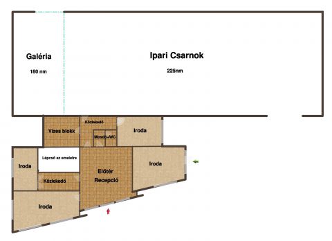Az irodaházhoz kapccsolódik egy 300 nm-es raktár.