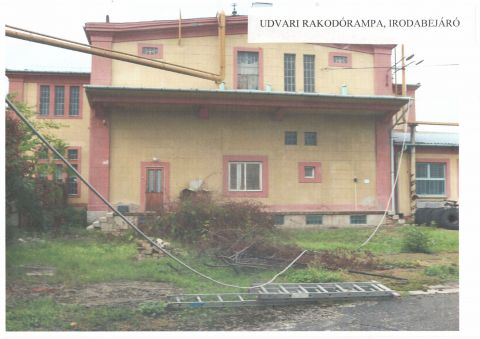 Földszint (1.244,3 m²): nagy, betonozott csarnokrész, rámpás vasúti kapcsolattal. Iroda, teakonyha, szociális blokkok, gázfűtés, új elektromos hálózat (2005).