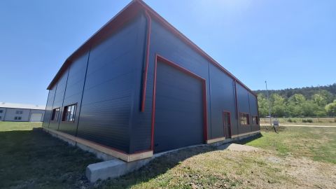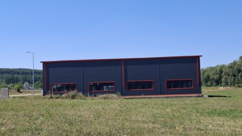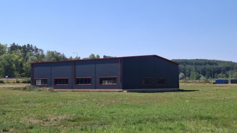 A szendvicspanel falazatú, acélszerkezetes csarnoképület 90 % készültségi fokon várja a kivitelezést folytató új tulajdonosát.