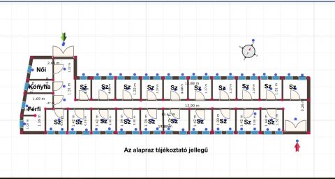 Eredeti célunk a dolgozók elszállásolása volt de az ingatlan bármilyen irodai, adminisztratív, oktatási, workshop- vagy tréninghelyszínként is kiválóan hasznosítható.