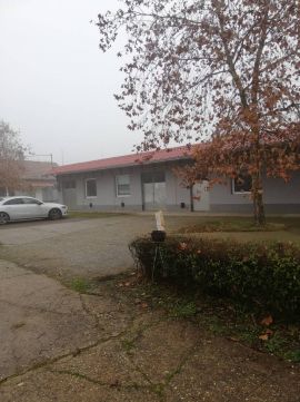 3. épület (38 m2): Ez eredetileg porta épületként funkcionált, de szociális épület (öltöző, mosdó, Wc, zuhanyzó) lett kialakítva belőle. Itt is a falak téglából épültek, a födém könnyűszerkezetes, a tető cserép fedésű. Nyílászárók fa és műanyag szerkezetűek. Falak festettek, a vizes helyiségek részben csempe burkolatot kaptak. Fűtése gázkonvektoros, a melegvíz ellátás bojlerral biztosított. A területen továbbá található egy raktárnak használható 150 m2-es sátor. A kert parkosított. Parkolás az ingatlan előtt és telken belül is megoldott.