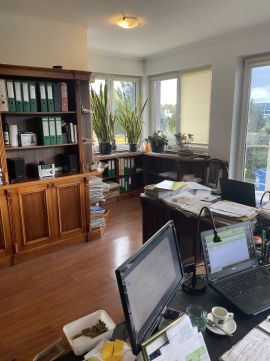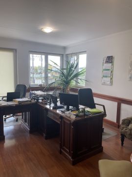 Irodaház: kétszintes, 130 m2-es téglaépület, az alsó szinten található az ügyféltér recepcióval, teakonyha, zuhanyzó, WC. A felső szinten helyezkedik el egy 30 m2-es iroda, zuhanyzó és WC, fölötte a padlástérben pedig az irattároló. A fűtésről és a melegvízről gáz cirkó gondoskodik.