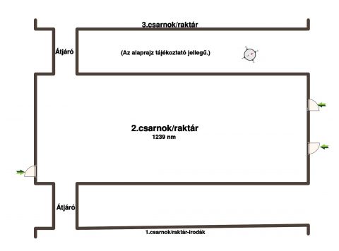 1. Irodarész: berendezett irodákkal, öltözővel, mosdókkal, kiszolgáló helyiségekkel: 750 nm, 3,0-4,5 m belmagassággal,