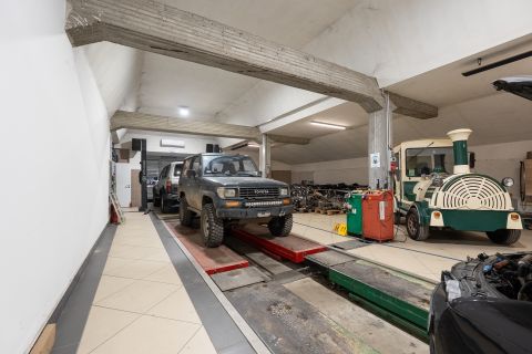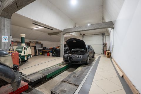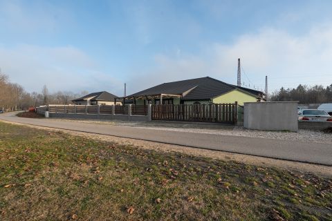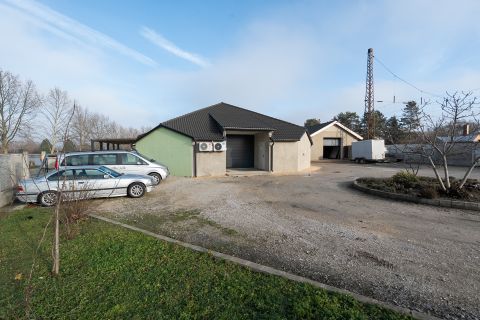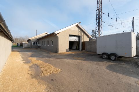- 850 m² tégla építésű felépítmény mely több részből, épületből áll: iroda, csarnok, műhely, étterem