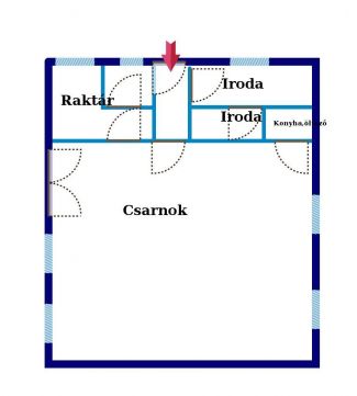 A csarnokban iroda helységek,(30nm) mosdók, öltözők női-ffi, konyha és zuhanyzó is megtalálhatóak.