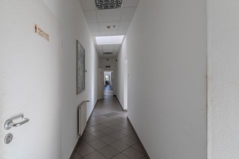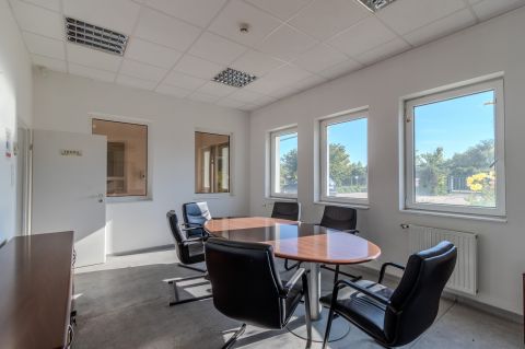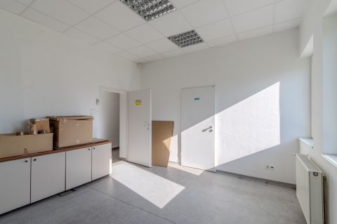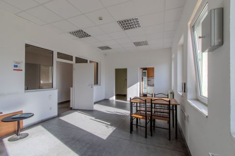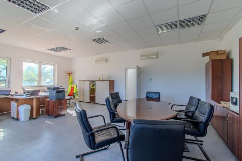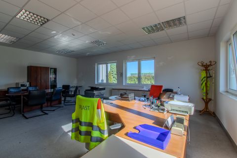 - 300m2-es irodarész, mely tégla falazatú, műanyag nyílászárókkal rendelkezik, irodák, öltözők és egyéb szociális helyiségek kaptak helyet benne