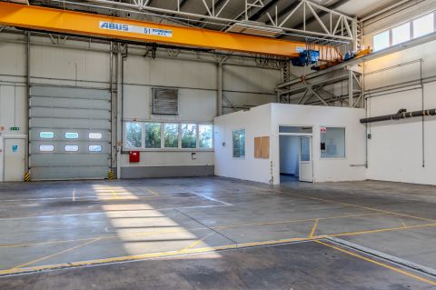 - 800m2-es fűtött gyártócsarnok, mely daruzott, padlója jó állapotú, nagy teherbírású acélhajas beton