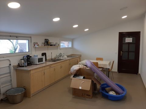 Étkező: 20m2 beépített konyhabútorral, indukciós főzőlappal.