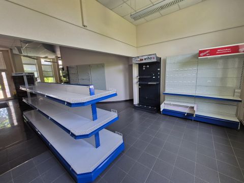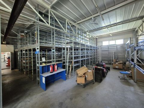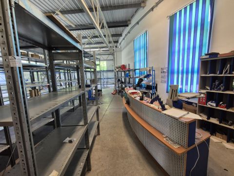 A raktár egy része polcrendszerrel ellátott.