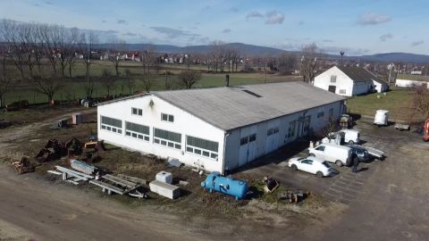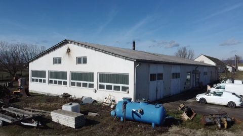 Az ingatlanban szerelőcsarnok: 2db 15x15m-es 4x6m-es kapukkal 2x225nm, raktár, tetőtér, öltöző- mosdó, konyha, kazánház, iroda, külső bejáratú raktár.