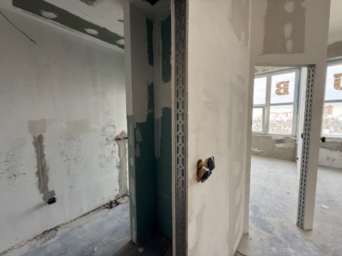 a konyha hidegburkolata és a szobák melegburkolata készre festett falak