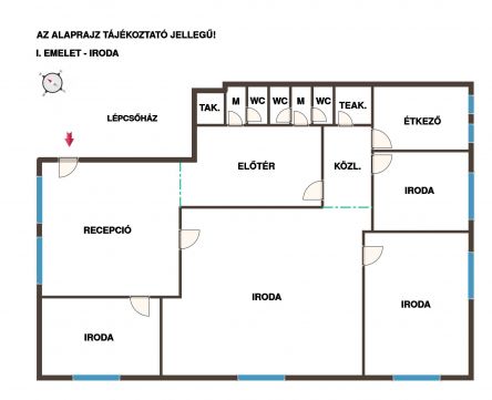 Az ingatlan világos, tágas terekkel rendelkezik, több különálló irodával, tárgyalóval, valamint konyhával és mosdókkal kialakított, így azonnal használható, funkcionálisan jól átgondolt elrendezésű.