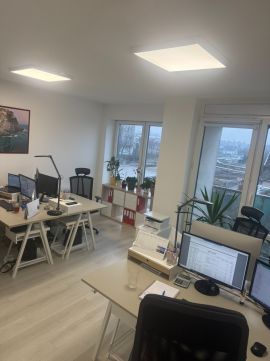 Az irodához tartozik egy 8 m²-es terasz és egy 2 m²-es loggia. Az iroda déli fekvésű, így egész nap rengeteg természetes fényt kap. Az ablakokon távirányítású zsaluzik kerültek kiépítésre. A helyiségben hűtő-fűtő klímaberendezés található, a fűtést pedig kondenzációs gázkazán biztosítja. Az ingatlan üzemeltetési költsége rendkívül alacsony: