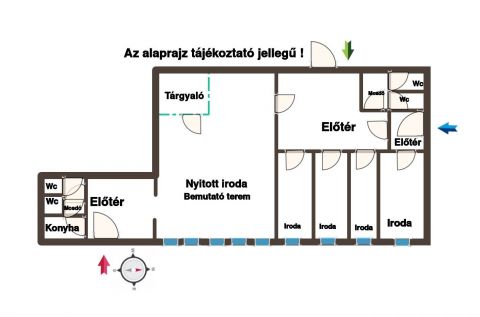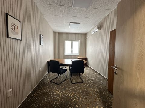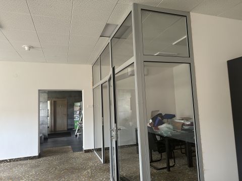 A 262 nm-es épület 4 db külön álló irodából, egy 118 nm-es nyitott irodából, külön tárgyalóból,mosdókból, konyhából és előtérből áll.