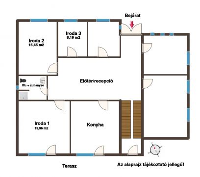 Kialakítását tekintve alkalmas lehet irodának, rendelőnek.