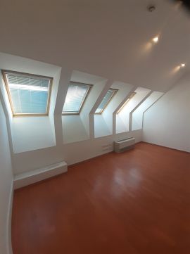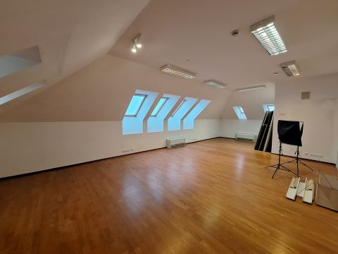 Impozáns villaépület 2. emeleti tetőterében kiadó egy tágas, 56 m2 alapterületű, világos iroda. Nagy belmagassága tovább növeli a térérzetet.