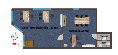 Az utcafronti, többfunkciós ingatlan nagy üvegportállal rendelkezik, alkalmas többek között irodának, üzleti-kereskedelmi célra, szépségipari tevékenységre is ... Jelenleg irodaként funkcionál, összesen 56 m2 , az utcafronti (kirakatos helyiség 30, a belső rész 22 m2, ezeken kívül egy tároló és wc van kialakítva. Átlagos havi rezsije 25.000.-Ft . A bérleti díj nettóban van feltüntetve, határozatlan idejű, minimum 12 hónapos szerződéssel kivehető, három hónapos felmondási idővel. Az elmúlt időszakban fotóstúdióként üzemelt, már ki van ürítve, akár azonnal birtokba vehető...