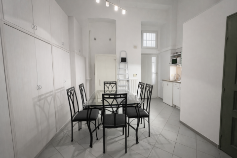 A teljes terület 60 m², amely megosztva működik: az egyik felében egy 23 fős utazási iroda dolgozik, a másik nagy szoba pedig most KIADÓ. A megbeszélés alapja, hogy a két nagyobb helyiség közül melyik legyen az új bérlő területe rugalmas megállapodással.