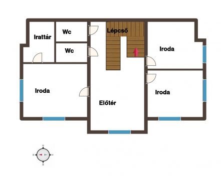 3 iroda, 2 wc, 1 irattár, közlekedő