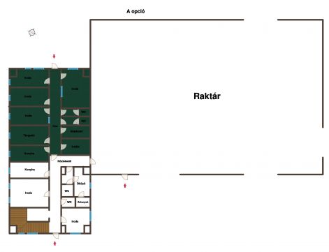 Igény esetén az emeleten nagyobb iroda kialakítása is lehetséges