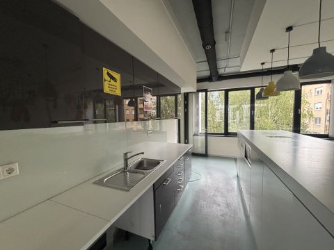 XIII. ker. Váci úton, kiváló közlekedés és infrastruktúra mellett, újszerű, modern irodaházban hosszútávra kiadó egy praktikus kialakítású, de variálható belső térrel rendelkező, /bútorozatlan,/ 422 nm-es, III. emeleti iroda együttes.