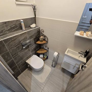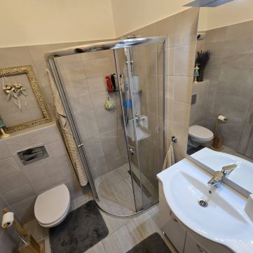 - Fürdőszobában beépítésre kerül 1 fürdőkád, 1 zuhanyzó, 1 wc, 1 mosdó