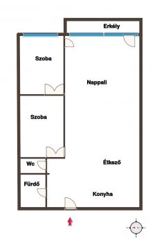 Az eredetileg egy hálószobás lakást átgondoltan átalakították: a hálószobát kettéválasztották, így jelenleg két külön nyíló szoba ( 2 db hálószoba ) került kialakításra. A belső falak mozgathatók, így igény esetén könnyedén visszaalakítható az eredeti, nagyobb hálószobás elrendezés.