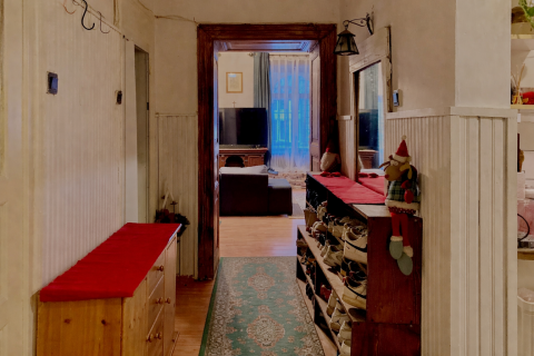 Ez a 74 m²-es, polgári hangulatú otthon azoknak szól, akik meglátják a lehetőséget a falakban, a belmagasságban és a fényben. A nagy belmagasság és a polgári arányok levegőssé, otthonossá teszik az egész lakást.